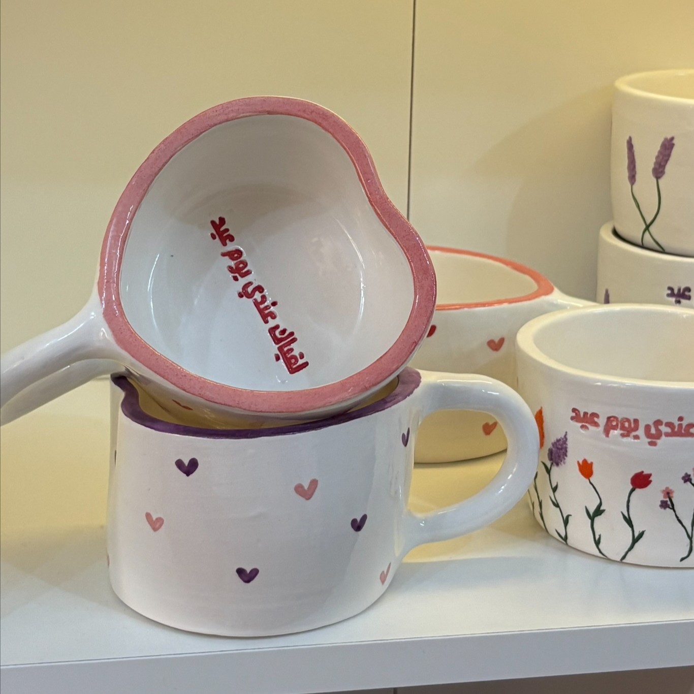 كوب العيد - مع قلوب وردية و حمراء