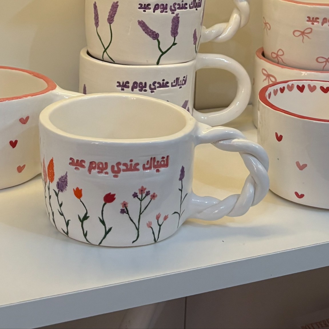 كوب العيد - مع قلوب وردية و حمراء